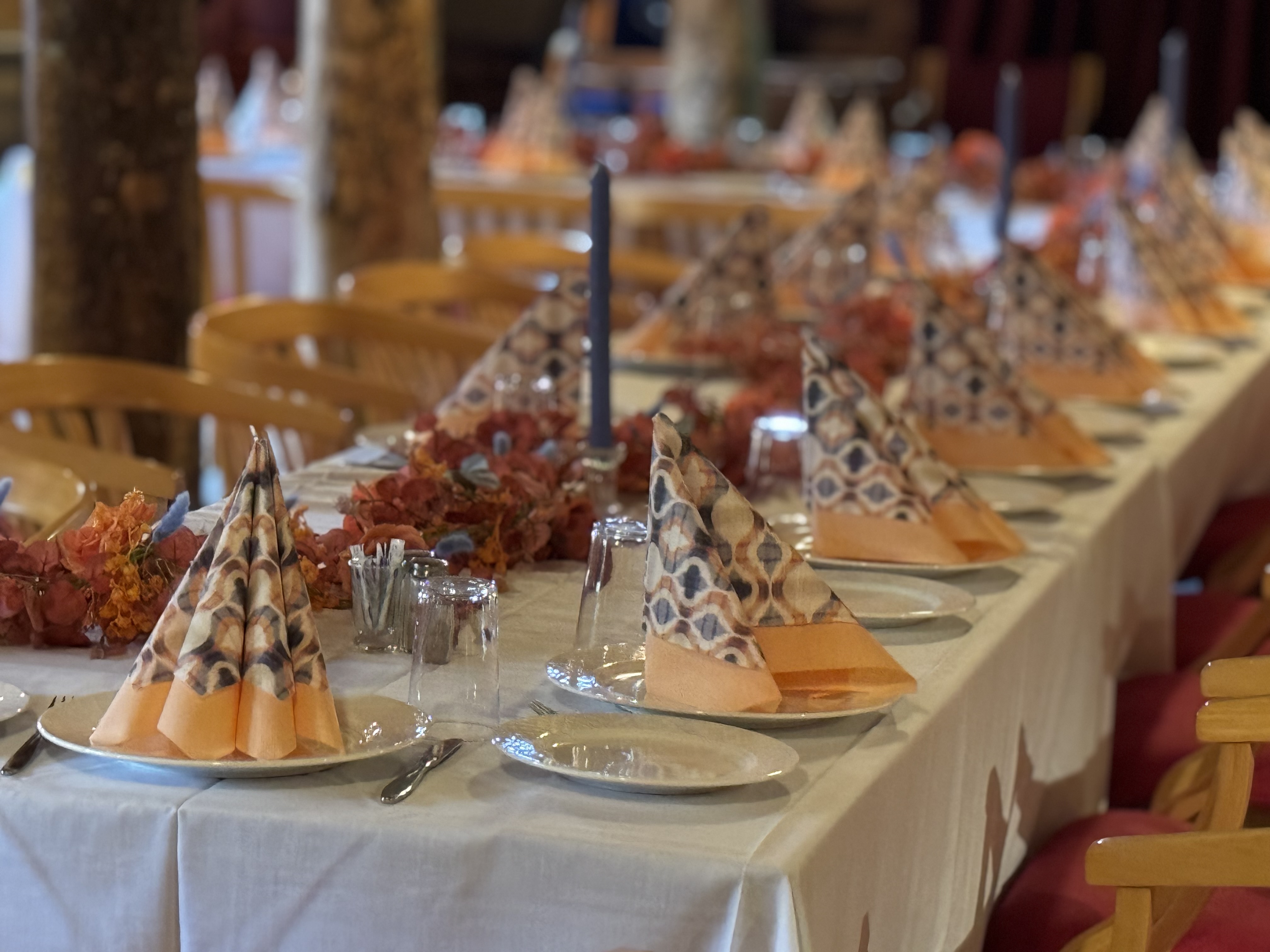 De gamle rommene på handelsstedet danner en ramme som ingen moderne festlokale kan gjenskape. Her kan du feire jubileum, bursdag eller andre merkedager med tregulv under føttene, levende lys på bordet og historien i veggene. Vi tilpasser meny og oppdekking etter anledningen.